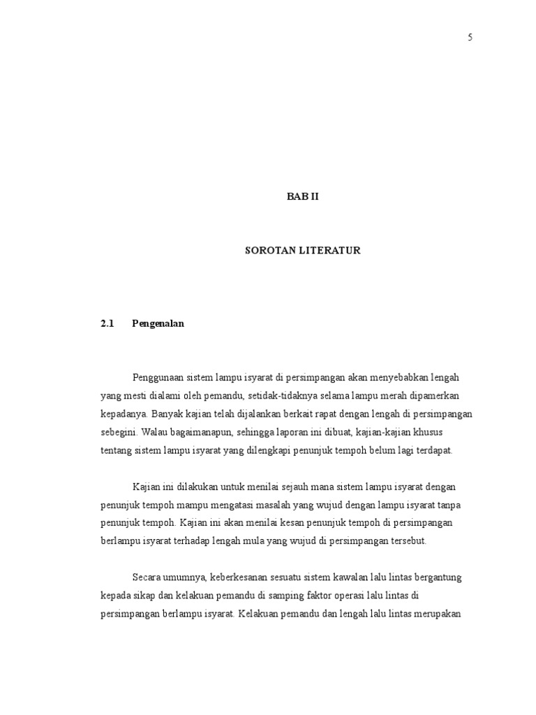 Kajian ini akan menilai kesan penunjuk tempoh di persimpangan berlampu isyarat terhadap lengah mula yang secara umumnya, keberkesanan sesuatu sistem kawalan lalu lintas bergantung kepada sikap dan kelakuan pemandu.