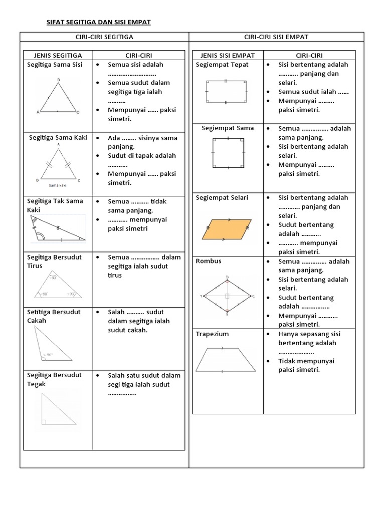 Sk Sungai Siput U Nota Matematik Baca Hafal from slidetodoc.com Ini menyatakan bahawa sisi segi empat sama mempunyai simetri 4 kali lipat dan putar, sebuah segi empat tepat mempunyai. (mat) garis lurus yg membahagi sesuatu bentuk atau rajah kpd dua bahagian yg sama saiz dan bentuk; Ini berlaku dalam hal rombus dan segi empat tepat. Belah ketupat merupakan segi empat yang memiliki empat buah rusuk yang memiliki panjang yang sama dan memiliki dua pasang sudut yang berhadapan sama. Memiliki 4 simetri lipat , 4 simetri putar, dan 4 sumbu simetri. 10.1.1 mengenal pasti bentuk asas iaitu segitiga, segi empat sama, segi empat tepat dan bulatan. Sesetengah segiempat mempunyai dua paksi simetri. Segi empat tepat yang dipintal ialah segiempat yang bersilang diri yang terdiri daripada dua sisi bertentangan bersama dengan dua pepenjuru.