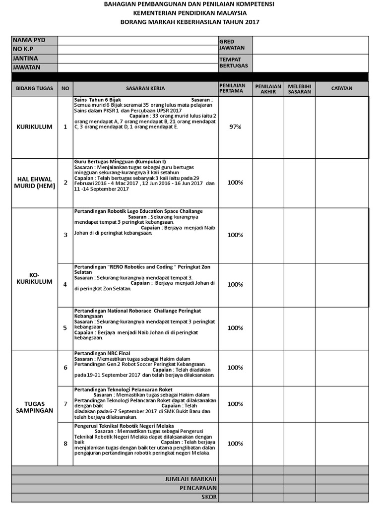 Borang keberhasilan ini bolehlah dikatakan sebagai satu borang yang mengandungi kpi key performance index ataupun indeks penunjuk prestasi yang mahu dicapai oleh guru pada tahun tersebut. 2 mencapai 100% guru mendapat ladap 7 hari setahun sebelum oktober 2021. Panduan pengisian borang keberhasilan 2021подробнее. Skor yang diberi akan membantu dalam memberi gambaran keberhasilan seseorang guru. От margret dugat , 11 months ago. Usahakan kalian download sebagai review saja, belilah cd original atau kalian beli secara online seperti di itunes untuk mendukung semua artis agar terus berkarya. Panduan mengisi borang keberhasilan 2021подробнее. 0 ratings0% found this document useful (0 votes). Borang keberhasilan guru 2020 di malaysia. Jikalau anda penjawat awam, jangan lupa untuk update sistem hrmis anda sekarang ini lagi ia telah digantikan dengan. We are a sharing community. 3 memastikan semua guru yang dilantik untuk melaksanakan pencerapan pdp menyelesaikan pencerapan. Contoh borang keberhasilan guru besar 2018.